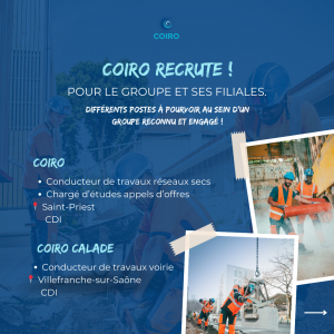 Le Groupe COIRO et ses filiales poursuivent leur développement et recrutent plusieurs profils pour renforcer leurs équipes 👇